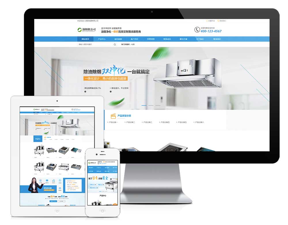 营销型油烟空气净化器商用电磁炉电器网站模板